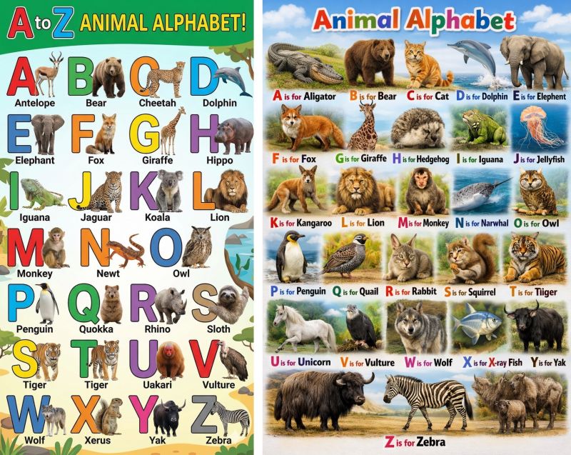 I read a couple of posts sharing examples of AI-generated animal A–Z posters, which actually make a nice test to compare Gemini and OpenAI.